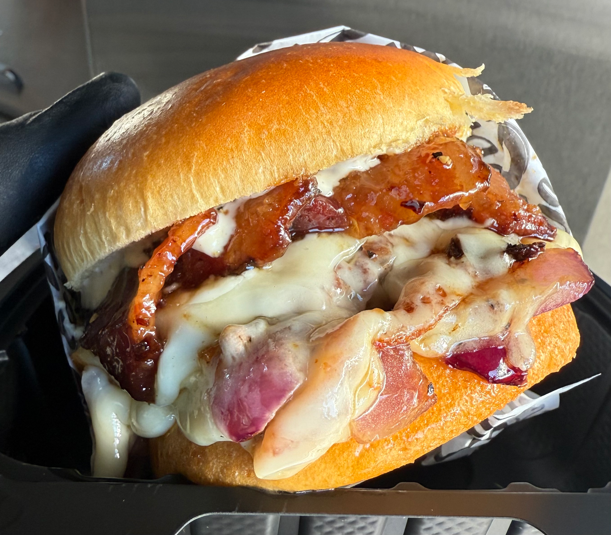 3X SMASHER w/ 2X KANDY BACON, GRILLED ONIONS, GRILLED SHROOMS, MUENSTER, CHEDDAR, & STR8SAUCE